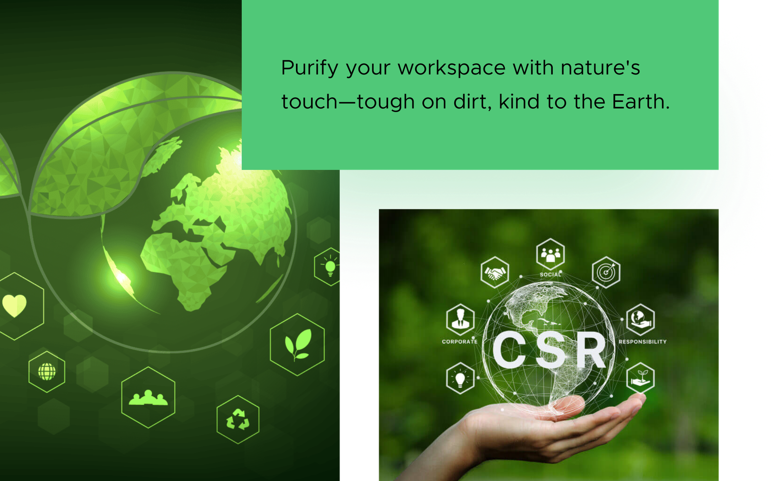 Earth IQ is dedicated to Corporate Social Responsibility (CSR), focusing on green cleaning practices and eco-friendly products to promote environmental sustainability. We allocate 1% of service proceeds to tree planting initiatives and support employment by sourcing products from NGOs. Our holistic CSR approach aims to shift mindsets towards sustainability, offering eco-friendly cleaning practices and educating clients on their benefits. Consider a safer, healthier, and environmentally responsible cleaning method for your next contract renewal.